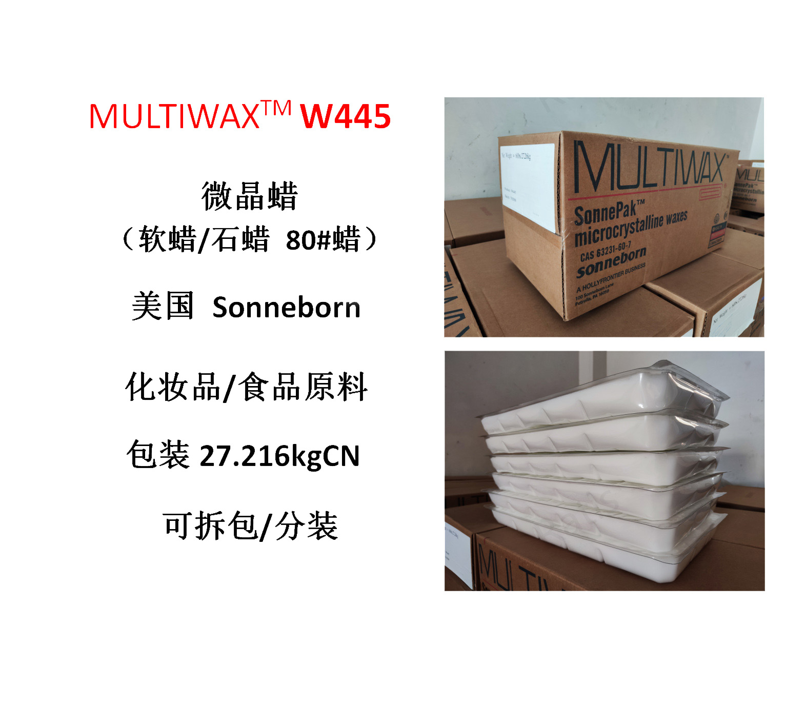 W-445微晶蠟(軟蠟)為白色或塊狀體,無臭、無味、非極性飽和烴,防水,電絕緣,針入度大,溶點(diǎn)高,柔韌性好。主要適用于環(huán)保蠟燭,蠟筆,蠟像,雕塑,化妝品中的潤唇膏,睫毛膏等,食品中的口香糖膠基,水果蔬菜保鮮,醫(yī)藥,防潮防腐,粘結(jié),上光,鑄模,電子,絕緣,復(fù)寫紙等等。