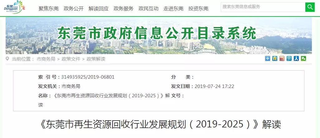 ????????7月24日,東莞市商務(wù)局對《東莞市再生資源回收行業(yè)發(fā)展規(guī)劃(2019-2025)》進(jìn)行解讀,進(jìn)一步規(guī)范再生資源回收行業(yè)發(fā)展